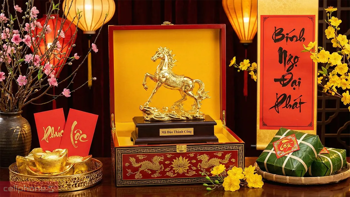 Vật phẩm phong thủy Bính Ngọ 2026 mạ vàng