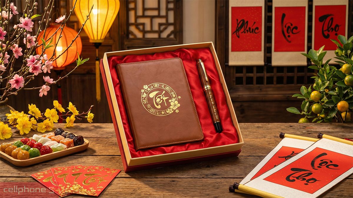 Sổ tay và bút ký tên là lựa chọn quà Tết doanh nghiệp mang nét trang nhã, gắn liền với công việc và hình ảnh chuyên nghiệp trong môi trường kinh doanh. Bộ quà tuy giản dị nhưng thể hiện sự tinh tế, dễ sử dụng trong công việc hằng ngày và mang theo thông điệp chúc một năm mới khởi sắc, hanh thông.