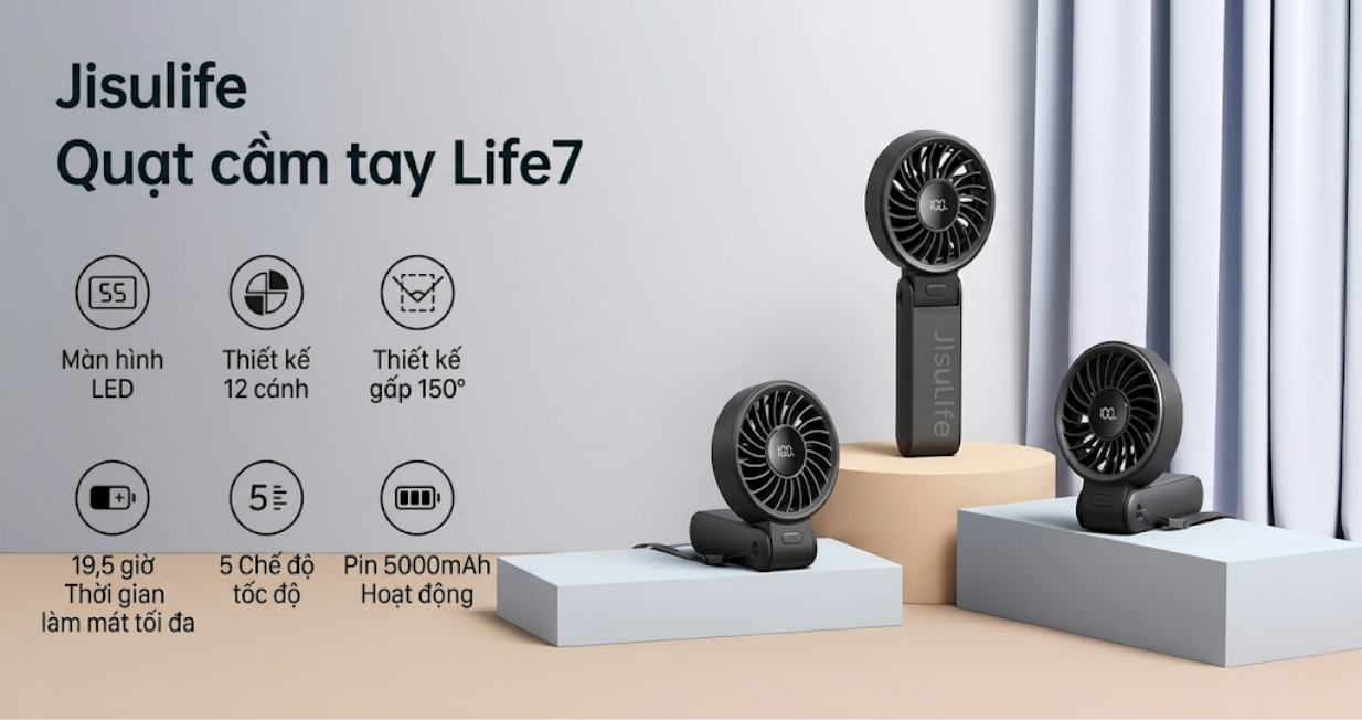 Quạt cầm tay Jisulife Life 7 5000mAh dễ dàng ghi điểm với thiết kế gấp gọn di động, phù hợp cho cả hoạt động trong nhà và ngoài trời. Được trang bị công nghệ hiện đại, quạt Mini Jisulife Life 7 đảm bảo sẽ luôn cung cấp tới bạn bầu không khí mát mẻ và thoải mái ở mọi lúc, mọi nơi.