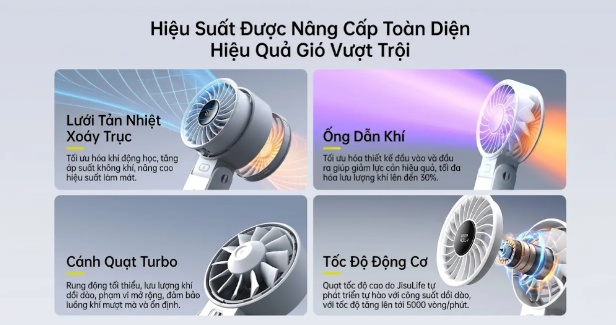 Quạt cầm tay Mini Jisulife Life 7 5000mAh nổi bật với động cơ không chổi than thế hệ mới, cung cấp trải nghiệm làm mát ấn tượng với luồng gió lên đến 5m/s. Kèm theo đó là thời lượng sử dụng ấn tượng nhờ được ưu ái sở hữu mức dung lượng pin đạt tới 5000mAh. Đồng thời, dòng quạt mini này cũng được đánh giá cao với màn hình LED hiện đại giúp hiển thị thông tin tốc độ gió và pin cực kỳ rõ nét.