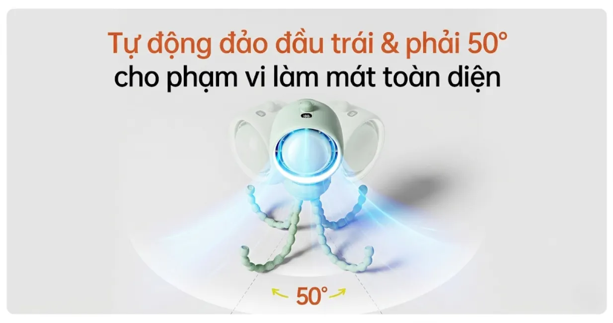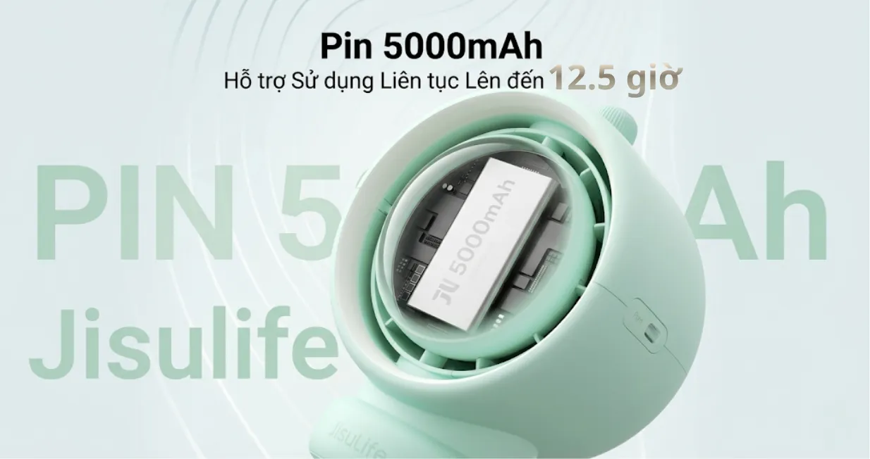 Quạt đa năng Jisulife Life 2S 5000mAh cho thời gian hoạt động lên đến 10,5 giờ, tích hợp công nghệ turbine không cánh và điều chỉnh gió 100 cấp độ. Sản phẩm hỗ trợ xoay tự động 50° cùng xoay thủ công 240°, kết hợp chân đế silicone an toàn, màn hình LED hiển thị rõ ràng. Quạt được trang bị đèn 3 mức sáng, đèn cảnh báo 2 mức và 4 chân đế đảm bảo độ ổn định.