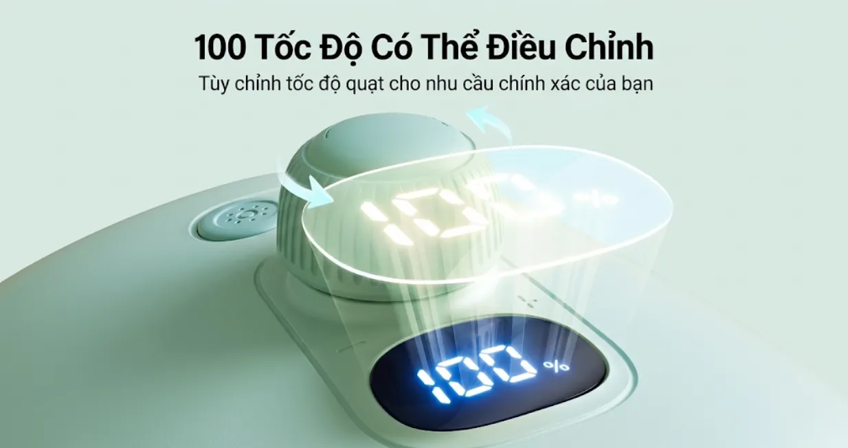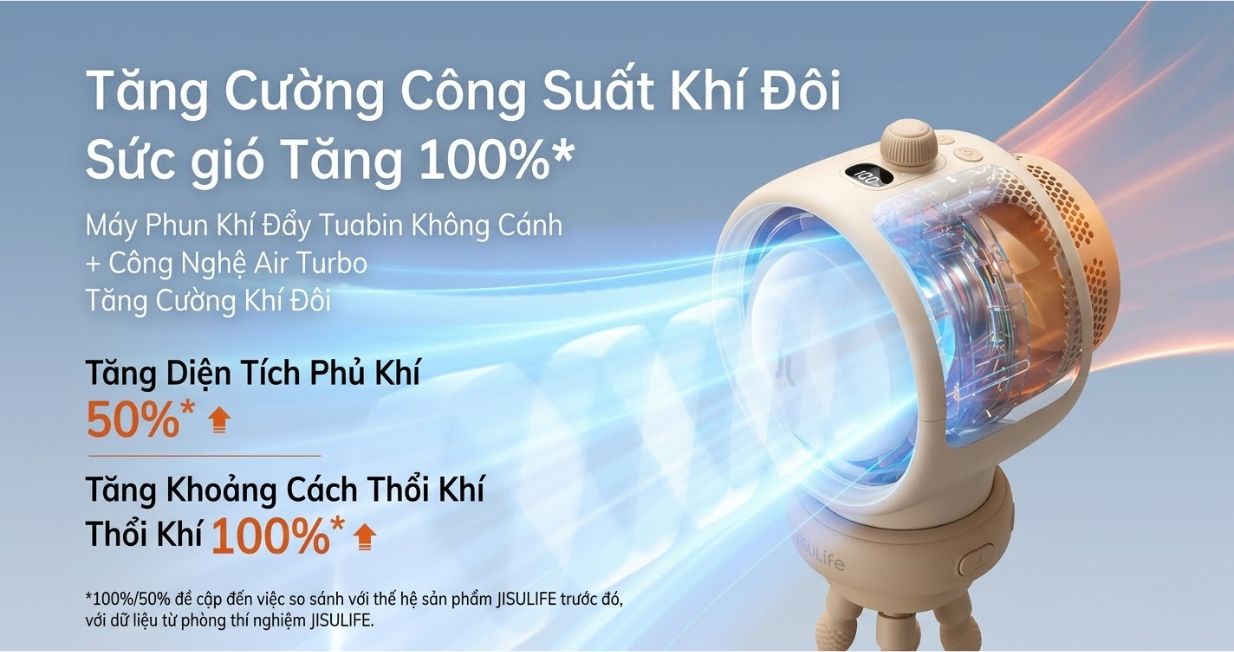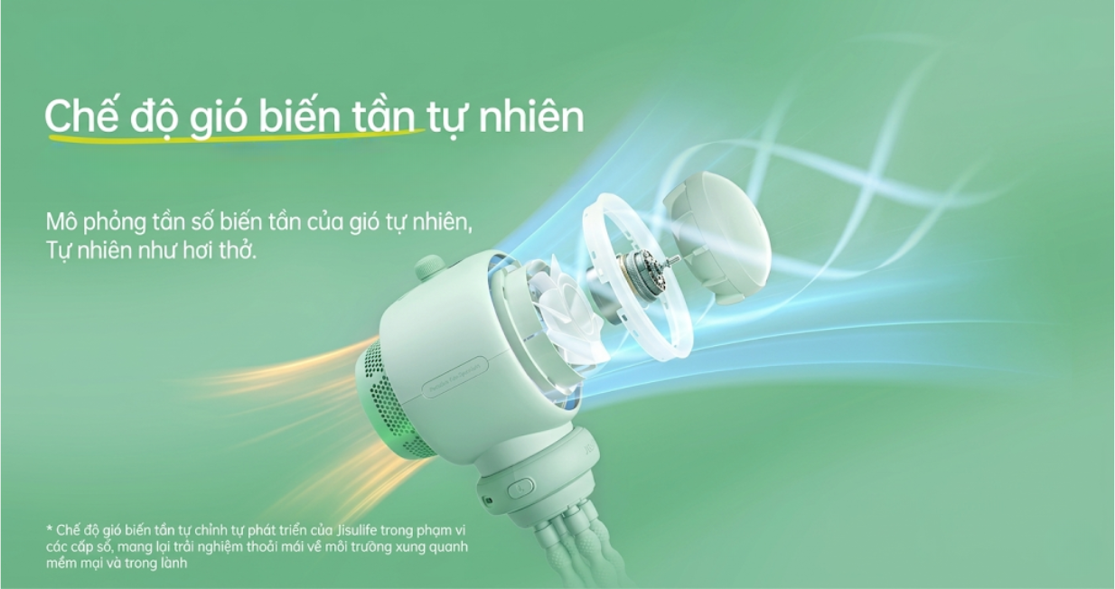 Quạt Jisulife Life 2S cung cấp 100 chế độ gió thông qua núm điều chỉnh, loại bỏ 99% bụi bẩn và chất ô nhiễm, mang đến làn gió êm ái. Pin 5000mAh cho phép sử dụng từ 2,5 đến 12,5 giờ tùy thuộc vào cường độ gió. Công nghệ turbo tăng cường luồng gió, đáp ứng nhu cầu làm mát ở nhiều môi trường, từ không gian nhỏ đến khu vực ngoài trời.
