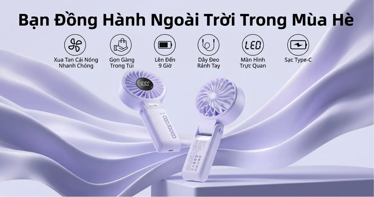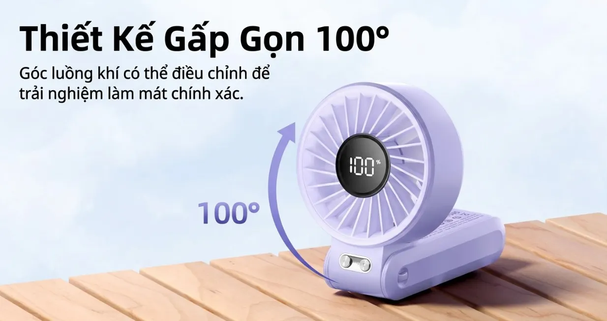 Quạt đa năng mini GOOJODOQ GFS003 là mẫu quạt gấp gọn di động sở hữu thiết kế tinh tế, hiện đại nhưng mang lại luồng gió mạnh mẽ, mát sâu và ổn định. Với dung lượng pin lớn, quạt có thể hoạt động từ 2 đến 14 giờ tùy chế độ. Đầu quạt mini có thể xoay linh hoạt 180 độ, giúp người dùng dễ dàng điều chỉnh góc để tận hưởng luồng gió mát ở vị trí thoải mái.