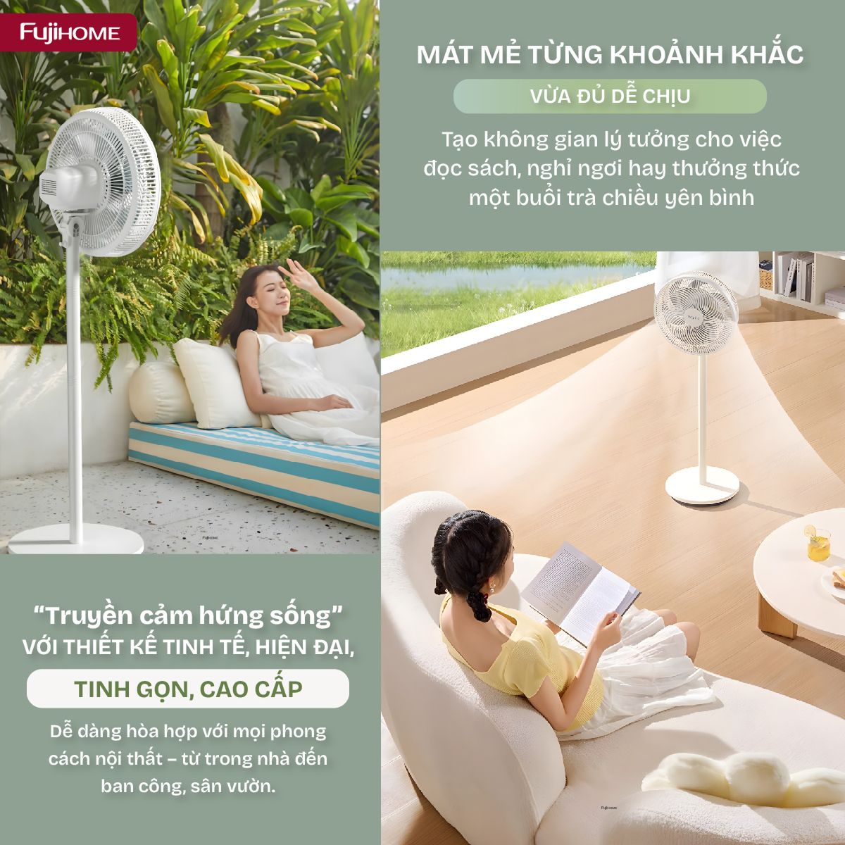 Mẫu quạt Fujihome này gây ấn tượng nhờ vẻ ngoài thanh lịch cùng khả năng làm mát đa năng. Cơ chế giảm thiểu âm thanh giúp quạt vận hành êm ái, đảm bảo không gian sinh hoạt luôn yên tĩnh, không bị ảnh hưởng bởi tiếng ồn.