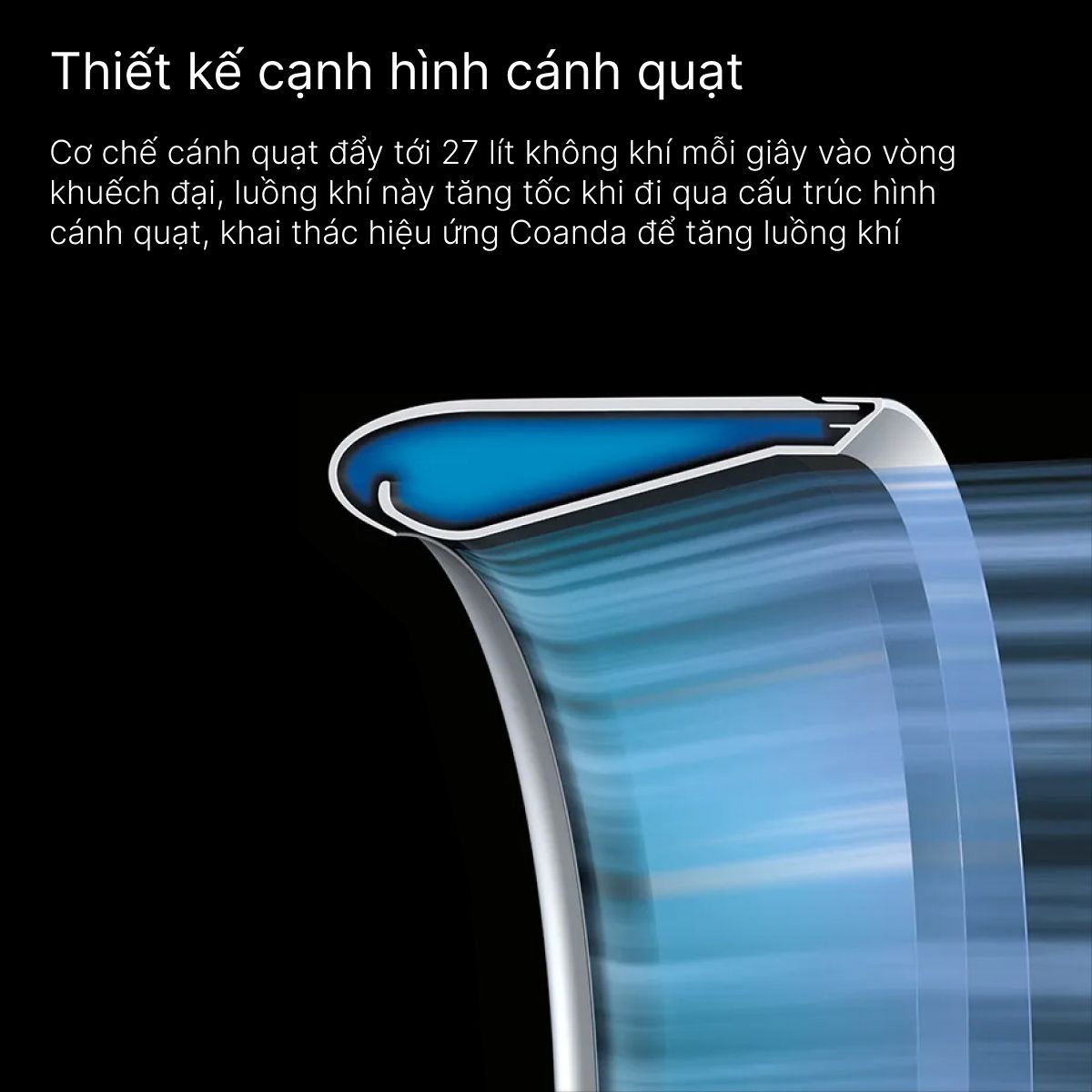 Dyson cũng đã tối ưu luồng gió qua các khe thoát khí để giảm ma sát không khí và hạn chế rung động trong suốt quá trình hoạt động. Nhờ vậy, quạt không chỉ vận hành êm mà còn duy trì độ ổn định lâu dài, không gây tiếng ồn tăng dần theo thời gian