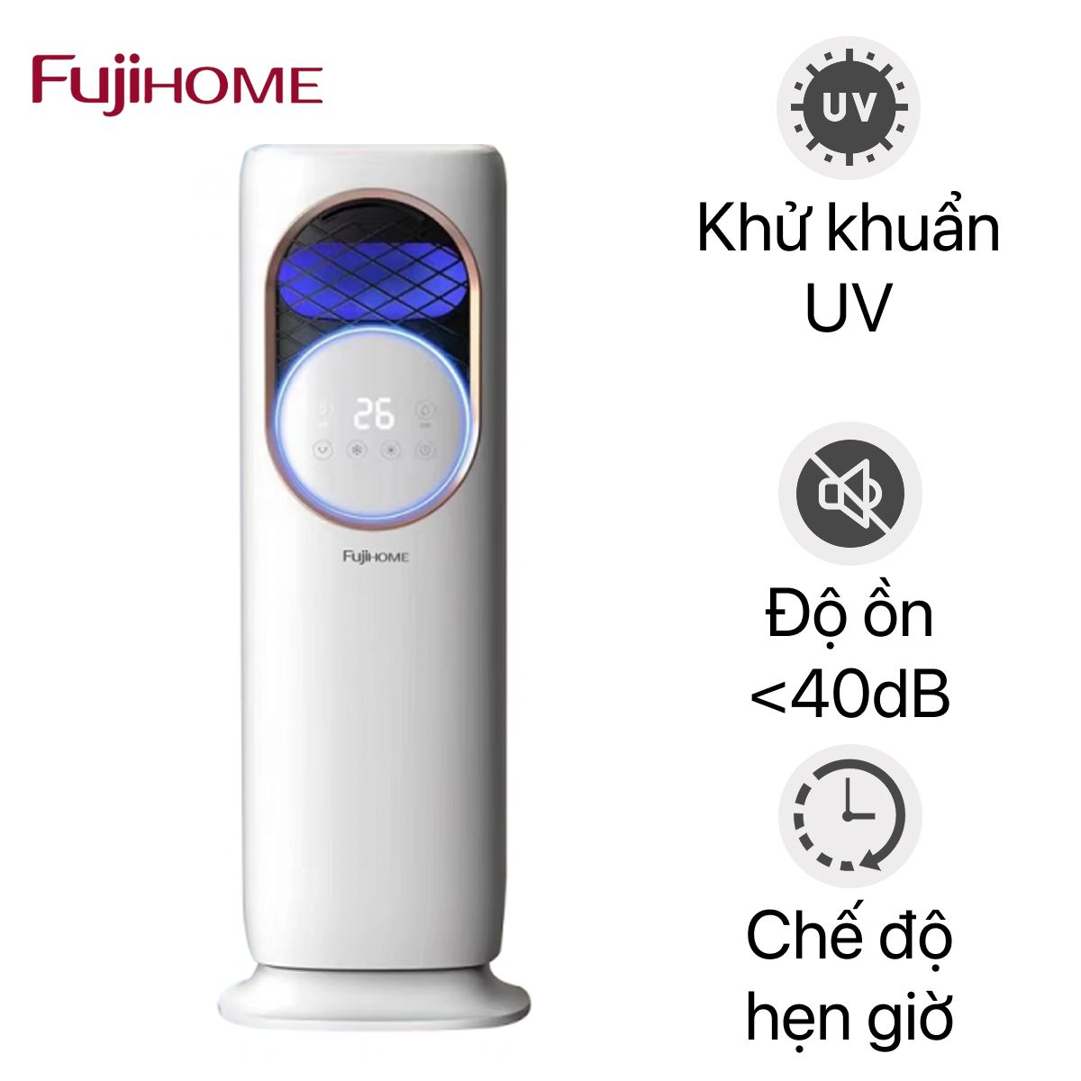 Quạt làm mát, sưởi ấm và tạo ẩm 4 mùa Fujihome AC01-W là giải pháp công nghệ đa chức năng, đáp ứng linh hoạt nhu cầu sử dụng trong mọi điều kiện thời tiết. Sản phẩm quạt Fujihome tích hợp thông minh ba tính năng trong một thiết kế hiện đại, mang lại trải nghiệm tiện nghi và tối ưu cho không gian sống.