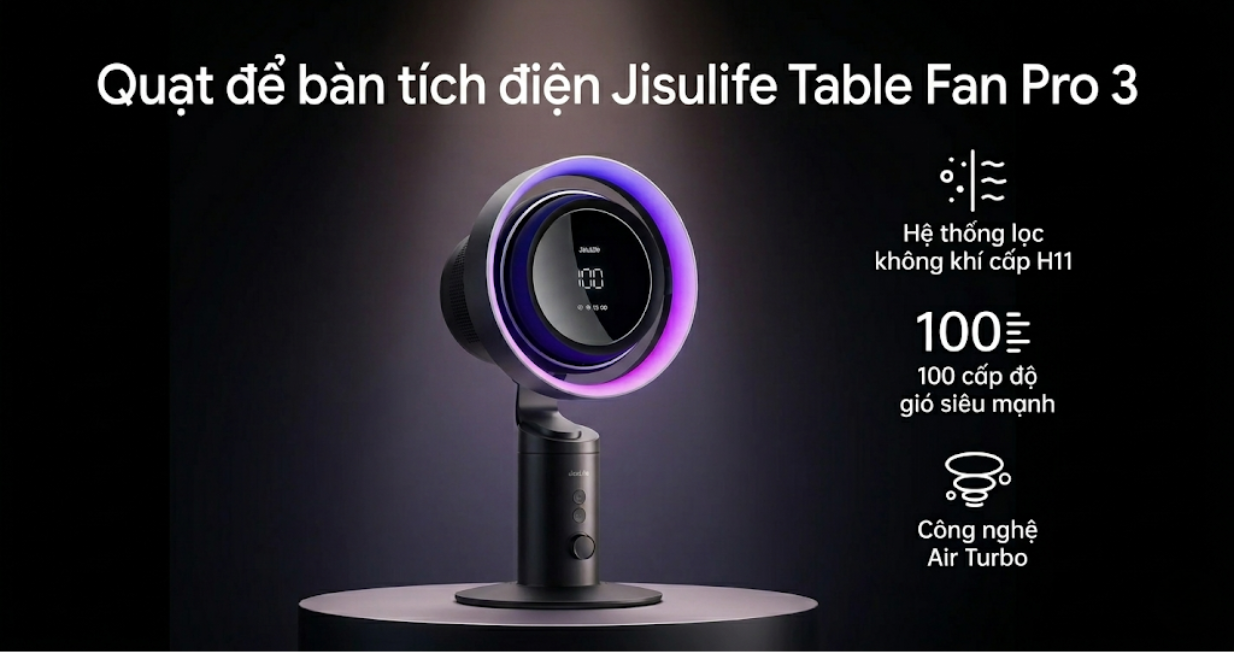 Quạt mini để bàn tích điện JisuLife Table Fan Pro 3 10000mAh là lựa chọn lý tưởng để tận hưởng sự mát mẻ trong những ngày trời nóng. Khách hàng có thể sắm chiếc quạt mini chất lượng tại CellphoneS. Cửa hàng sẽ đi kèm bảo hành dài hạn với giá cả phù hợp. Người dùng còn được đổi trả sản phẩm theo quy định gặp lỗi từ phía sản xuất.