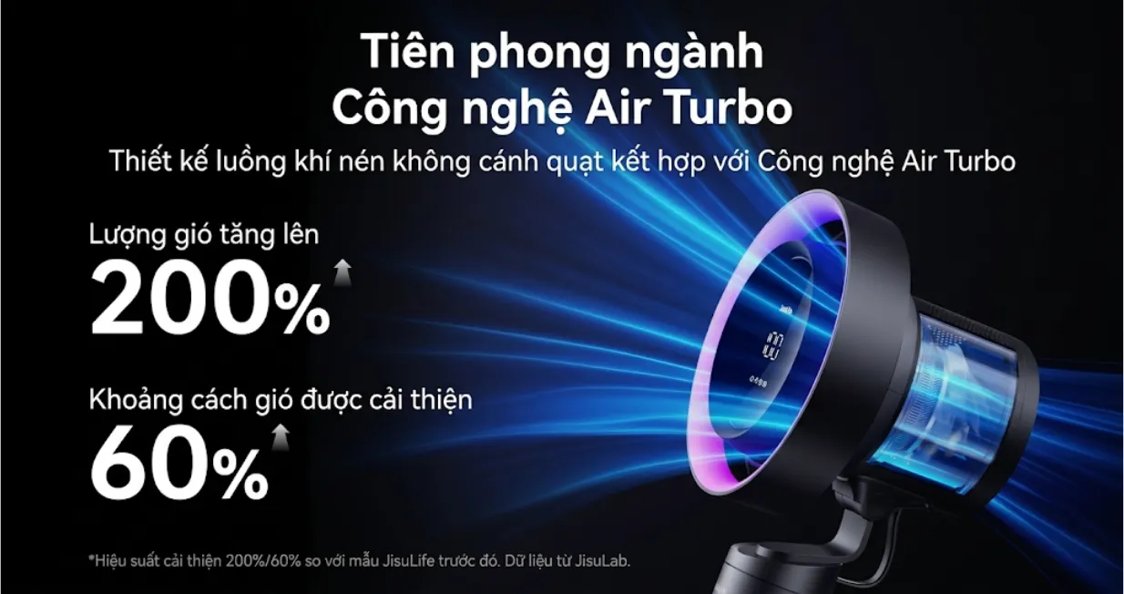 Quạt mini để bàn tích điện JisuLife Table Fan Pro 3 10000mAh được trang bị công nghệ Air Turbo. Nhờ vậy, hiệu suất cánh quạt được tốt ưu hoá để luồng gió thổi ra có độ mạnh vượt trội, cũng như duy trì sự êm ái.