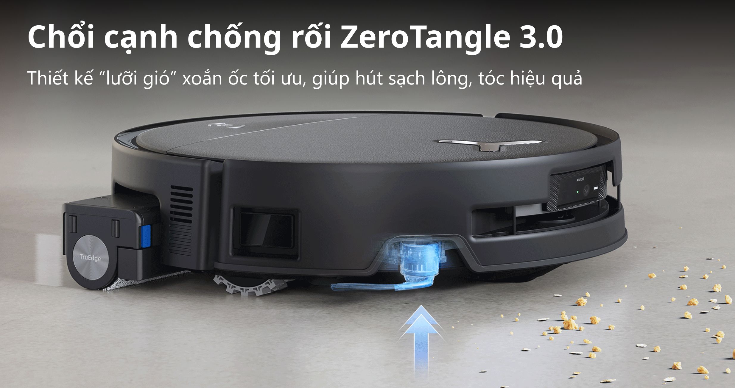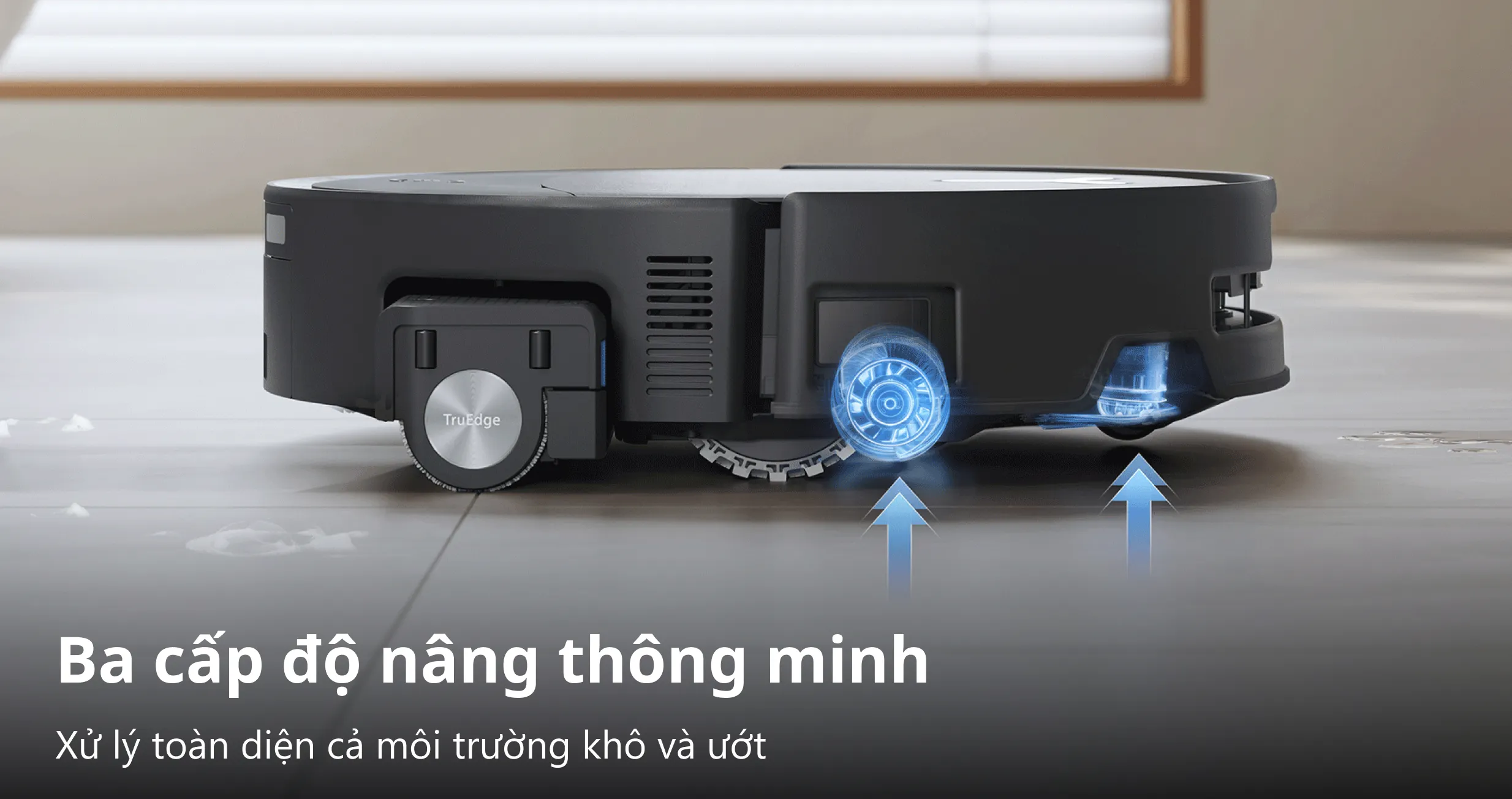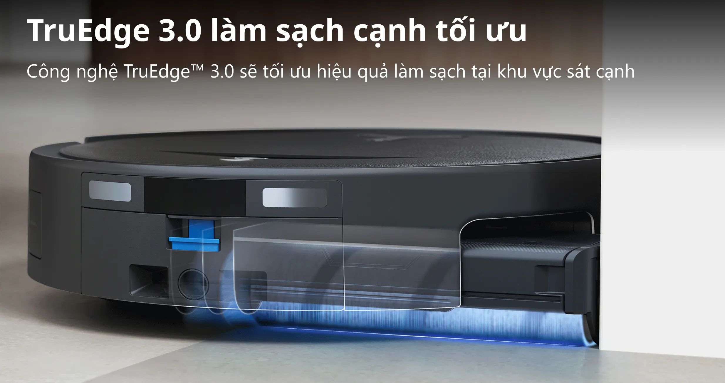 Tính năng TruEdge 3.0 cho phép bộ phận lau tiến sát các khu vực cạnh tường trong khoảng cách chỉ 1.5cm. Sự kết hợp giữa ánh sáng cấu trúc 3D phía trước giúp máy duy trì chuyển động bám mép mượt mà. Nhờ đó, các khu vực sát chân bàn hay kệ tủ được làm sạch kỹ hơn, hạn chế bụi bẩn còn sót lại.