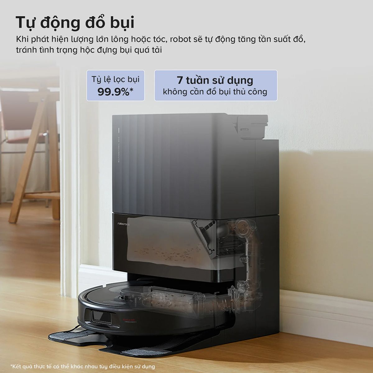 Robot hút bụi Roborock làm sạch toàn diện nhờ hệ thống động cơ công suất cao và trạm bảo dưỡng thông minh. Nhờ vậy, máy hoạt động bền bỉ cả ngày, hút bụi các ngóc ngách trong nhà mà không lo gián đoạn.
