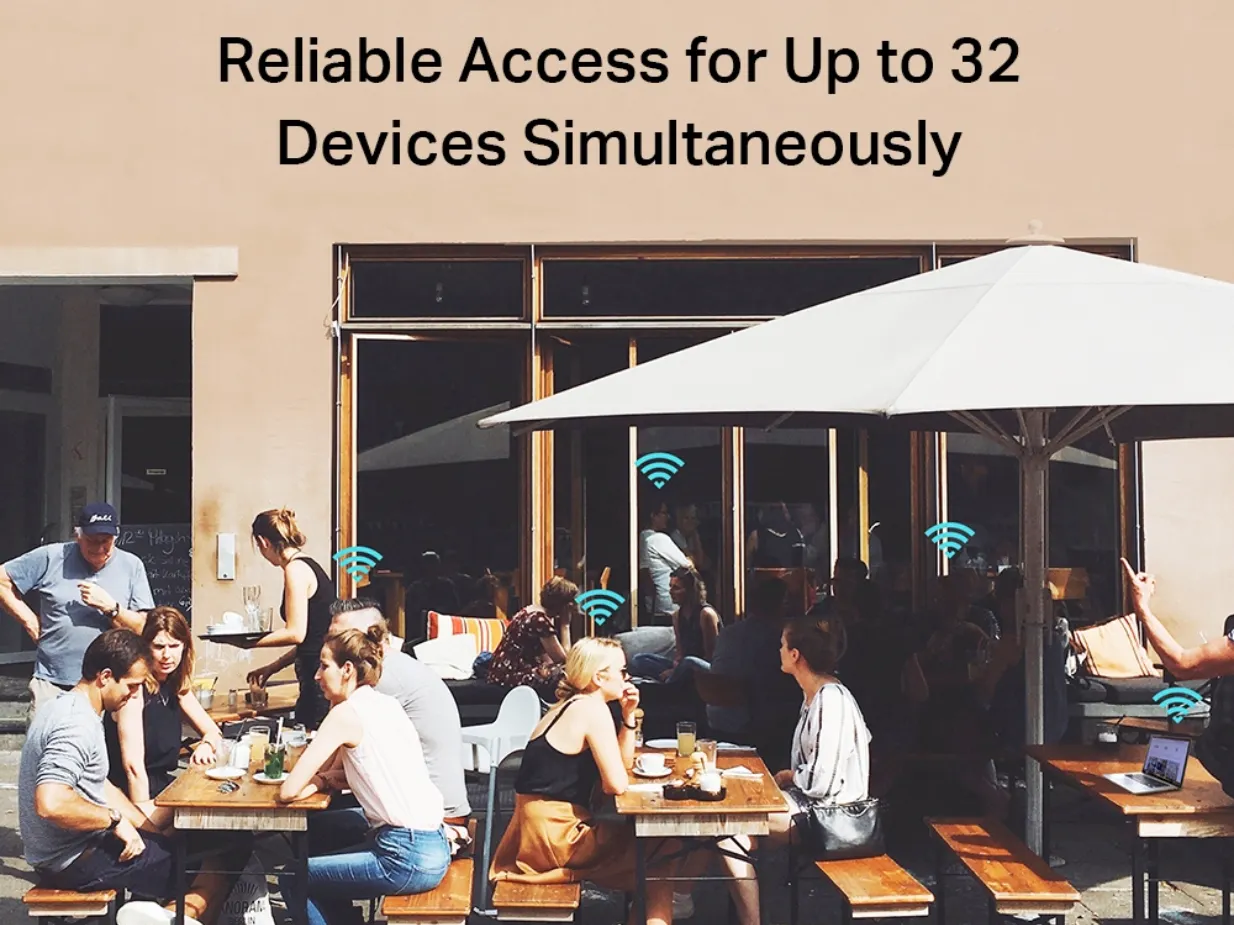 Bên cạnh đó thiết bị còn hỗ trợ kết nối đến 32 thiết bị khác nhau nên bạn có thể yên tâm sử dụng nhiều thiết bị cùng lúc hoặc sử dụng để chia sẻ mạng WiFi trong các bữa tiệc, picnic với bạn bè cũng vô cùng thích hợp.
