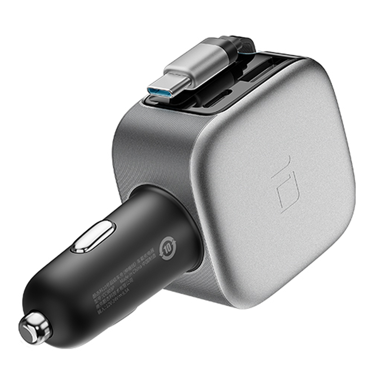 Thân củ sạc ô tô Cuktech 10 2C1A 100W cáp USB C CC903P màu xám đen với kích thước nhỏ gọn, dễ dàng mang đi mà không gây vướng víu. Cáp Type-C tích hợp dài đến 70cm có thể rút lại gọn gàng và cất bên trong củ sạc, mang lại không gian ngăn nắp trong xe.