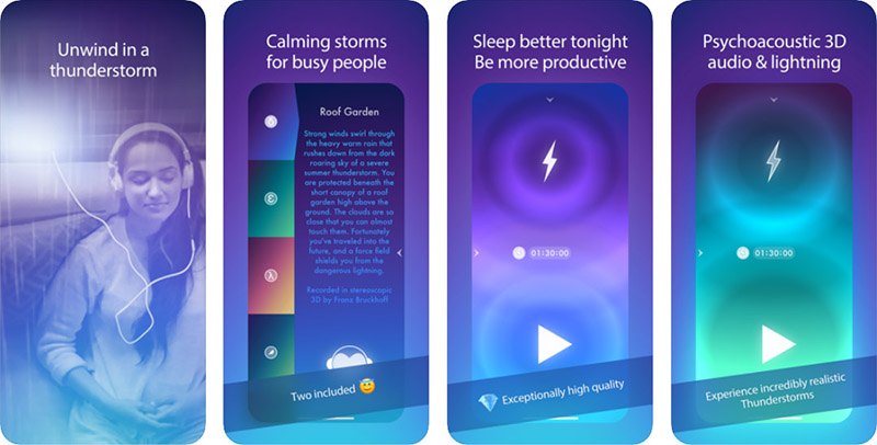 Ứng dụng này sẽ tạo ra những hiệu ứng âm thanh 3D của một cơn bão. Mặc dù có thể nhiều người không thích điều này, nhưng với những ai nghe tiếng sấm chớp hay âm thanh mưa rì rào thì Thunderspace Rain Sleep Sounds lại có thể giúp thư giãn, tạo ra sự thoải mái, tăng khả năng tập trung khi làm công việc hay giúp đi vào giấc ngủ dễ dàng hơn. Các bạn có thể tải Thunderspace Rain Sleep Sounds tại đây.