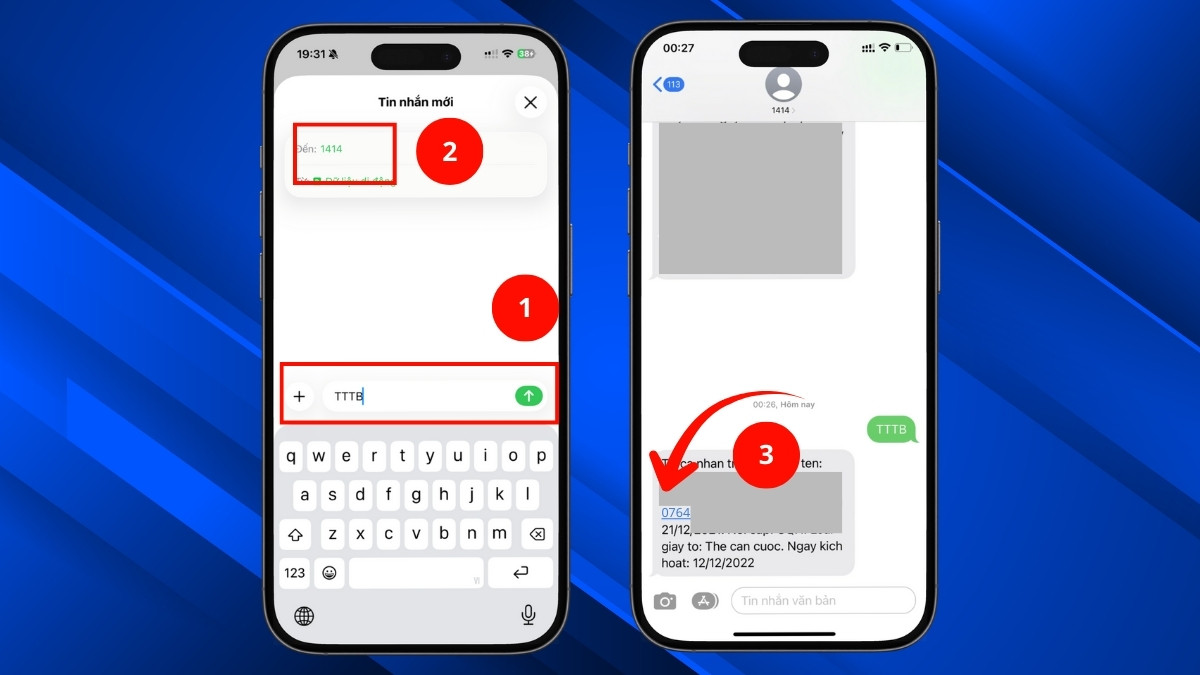 - Nếu muốn kiểm tra thông tin thuê bao bằng tin nhắn, hãy nhập TTTB + Số CCCD và gửi về 1414. Hệ thống sẽ trả về tin nhắn chứa các dữ liệu quan trọng, bao gồm số điện thoại đang dùng và đầu số 0764 nếu bạn thuộc dải này.