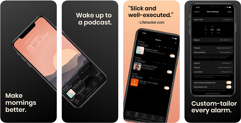 2,99 Free/ 151 Ratings /App StoreNext Up là một ứng dụng đồng hồ báo thức kèm podcast với đầy đủ tính năng được thiết kế để giúp cho người dùng có một buổi sáng tốt hơn. Thức dậy với những thông tin mới nhất trên thế giới, âm thanh êm dịu, các bài tập thiền, chương trình hài kịch hoặc giọng nói nhẹ nhàng của LeVar Burton khi đọc cho bạn một câu chuyện ngắn mới - sử dụng bất kỳ trong số hơn 750.000 podcast có sẵn trên nền tảng Apple Podcasts.
