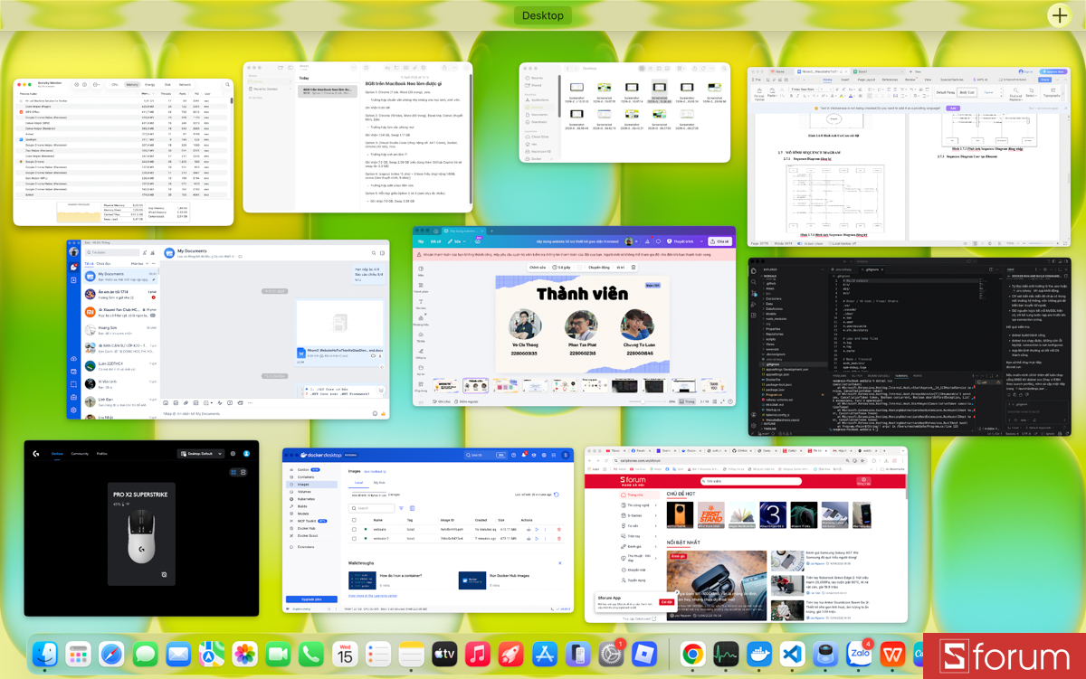 Khi mình thử kết hợp cả workload văn phòng và lập trình, mọi thứ bắt đầu giảm độ mượt rõ rệt. Bộ nhớ thống nhất vẫn quanh mức 7.04GB nhưng swap tăng mạnh lên 3.38GB. Lúc này, máy không còn giữ được sự mượt mà như trước, đặc biệt khi chuyển đổi qua lại giữa nhiều ứng dụng.