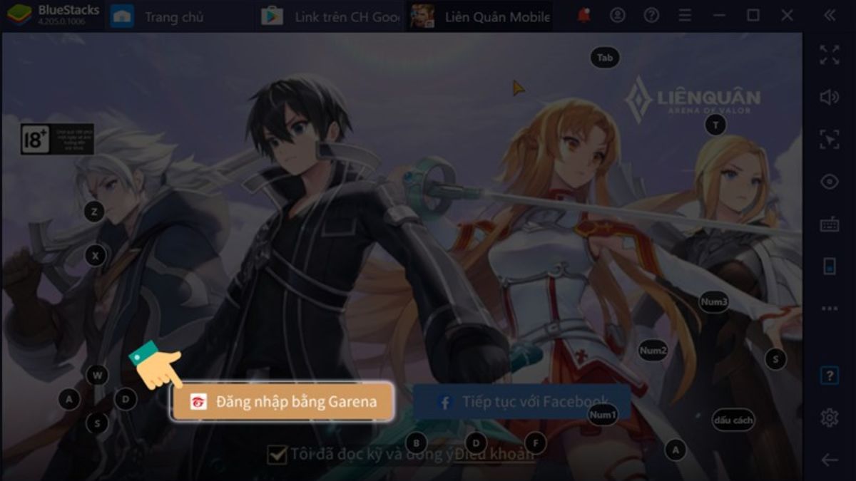 - Bước 1: Chọn phương thức đăng nhập bằng Garena ngay trên giao diện chính.