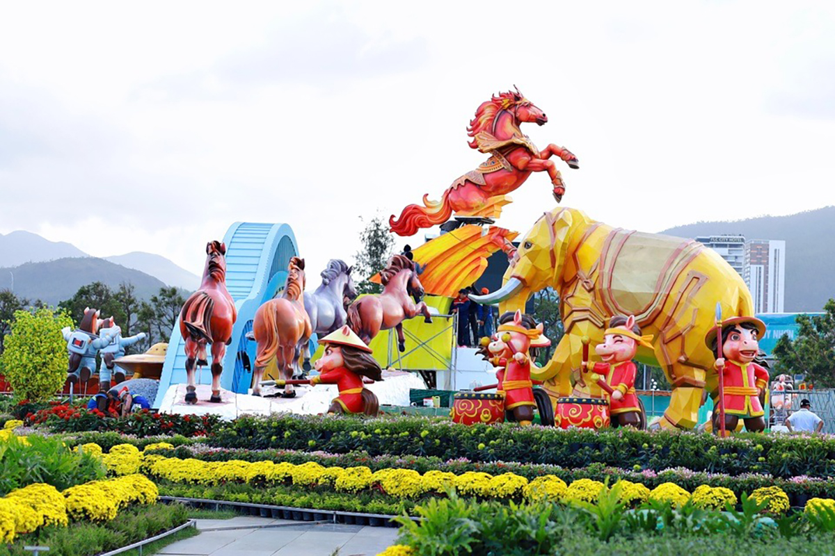 Đại diện Sở Văn hóa, Thể thao và Du lịch Gia Lai cho biết cụm linh vật chính năm nay lấy cảm hứng từ hình tượng Thánh Gióng – Đất võ – Đại ngàn, thể hiện tinh thần dũng mãnh và khát vọng vươn xa. Với cách thể hiện trẻ trung, hiện đại cùng thảm hoa và tiểu cảnh đi kèm, không gian này đang dần trở thành điểm check-in hấp dẫn, góp phần làm mới diện mạo Tết và thu hút đông đảo người dân lẫn du khách.