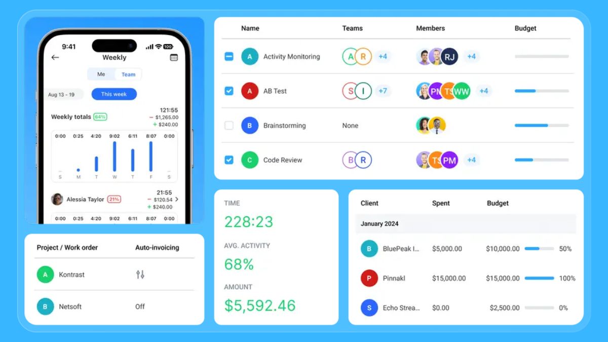 Everhour là app chấm công phù hợp với doanh nghiệp làm việc theo dự án và cần tích hợp với các nền tảng quản lý công việc. Phần mềm hỗ trợ báo cáo chi tiết, đồng bộ dữ liệu và theo dõi hiệu suất nhóm từ xa hiệu quả.