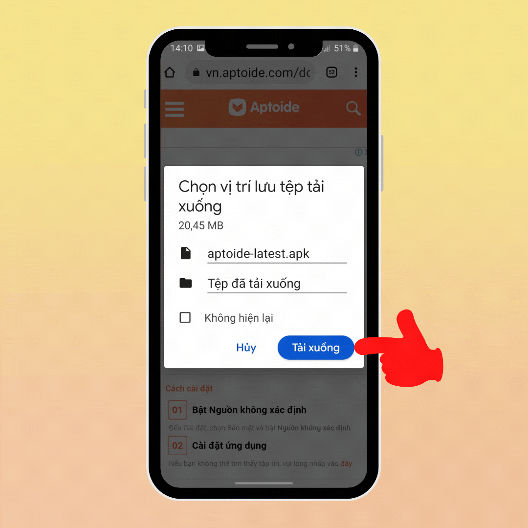 Bước 2: Tiếp theo, nhấn 'OK' và 'Tải xuống' để bắt đầu tải ứng dụng Aptoide về điện thoại Android.