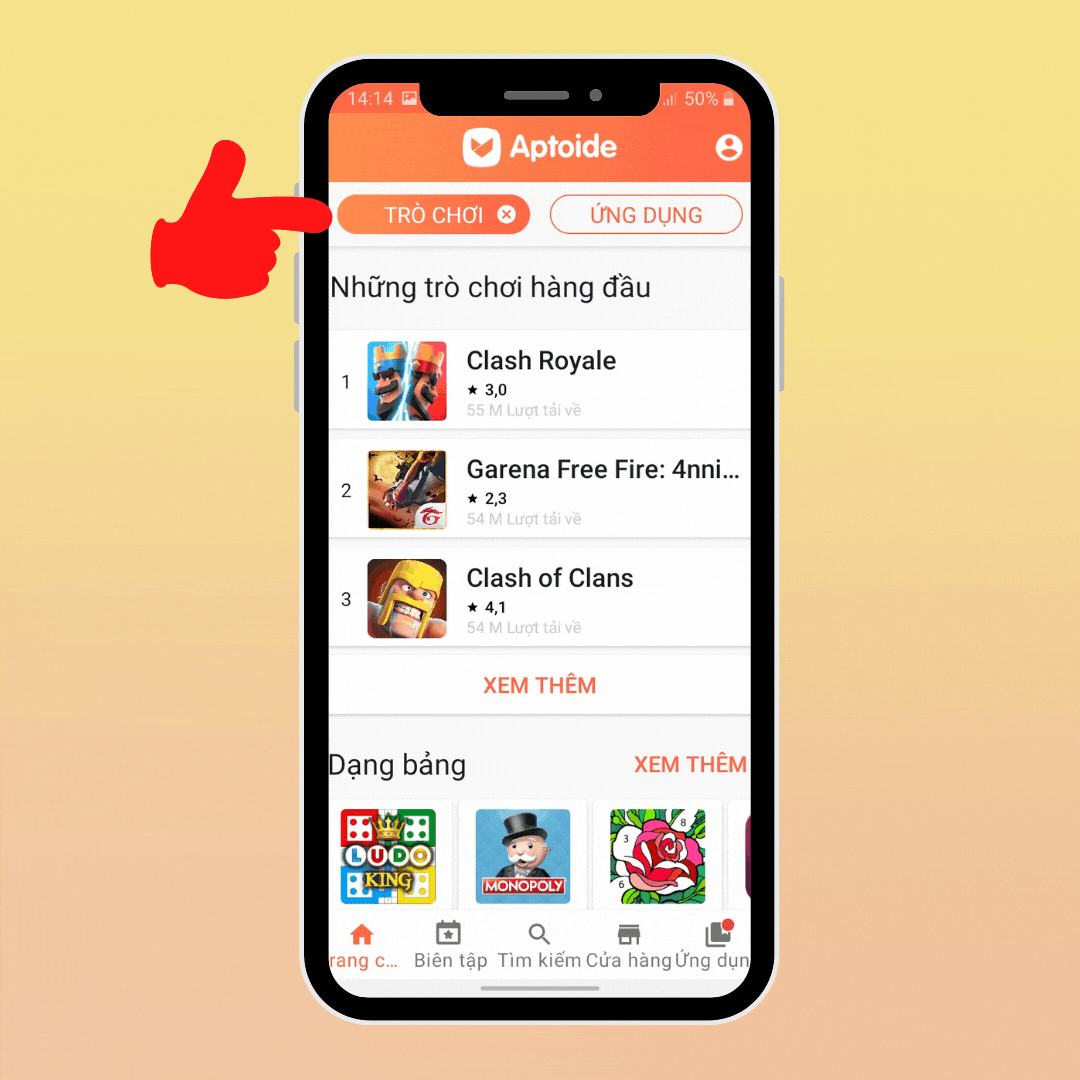 Bước 2: Ứng dụng sẽ phân ra hai mục là Trò chơi và Ứng dụng. Bạn muốn tải ứng dụng ở mục nào thì chỉ cần nhấn vào mục Trò chơi hoặc Ứng dụng.