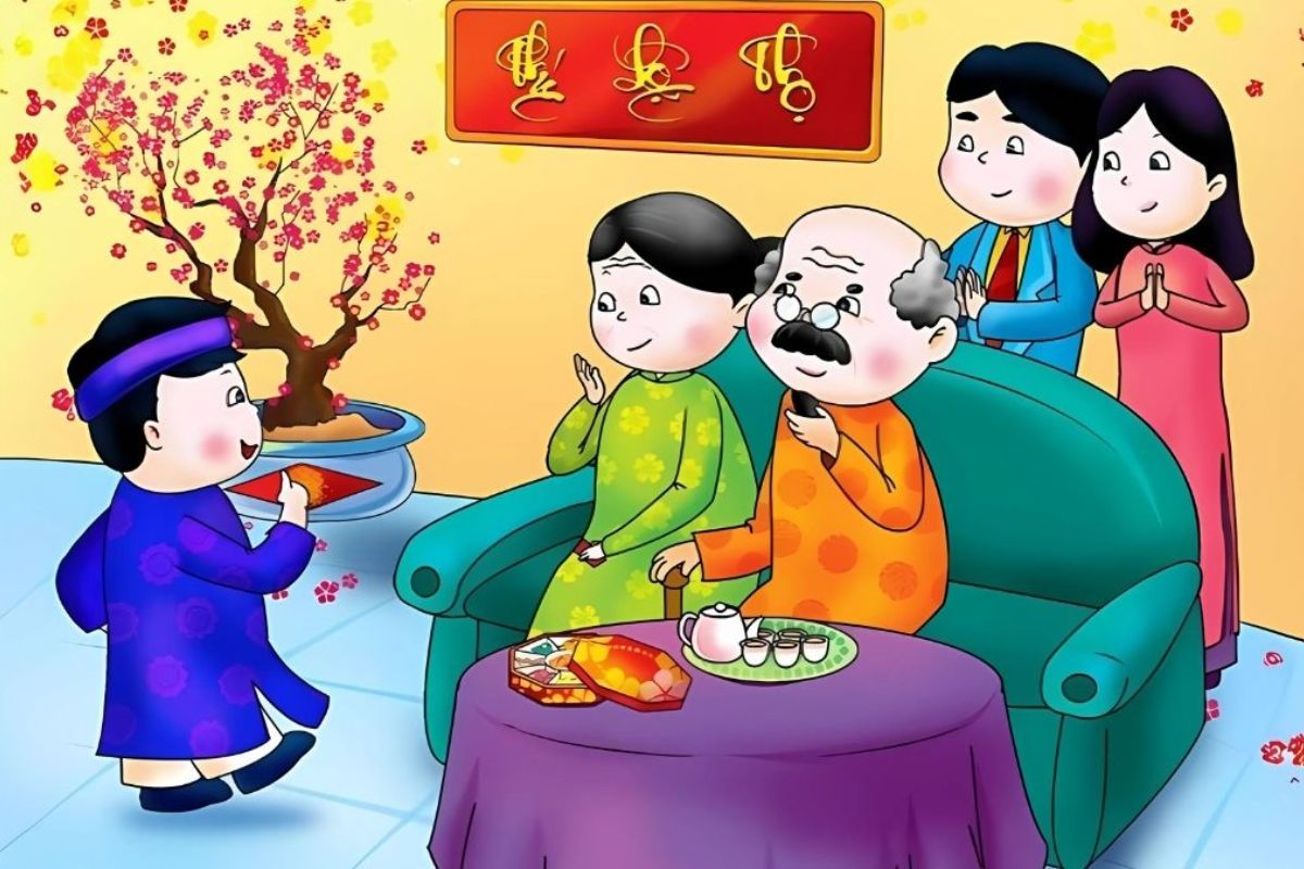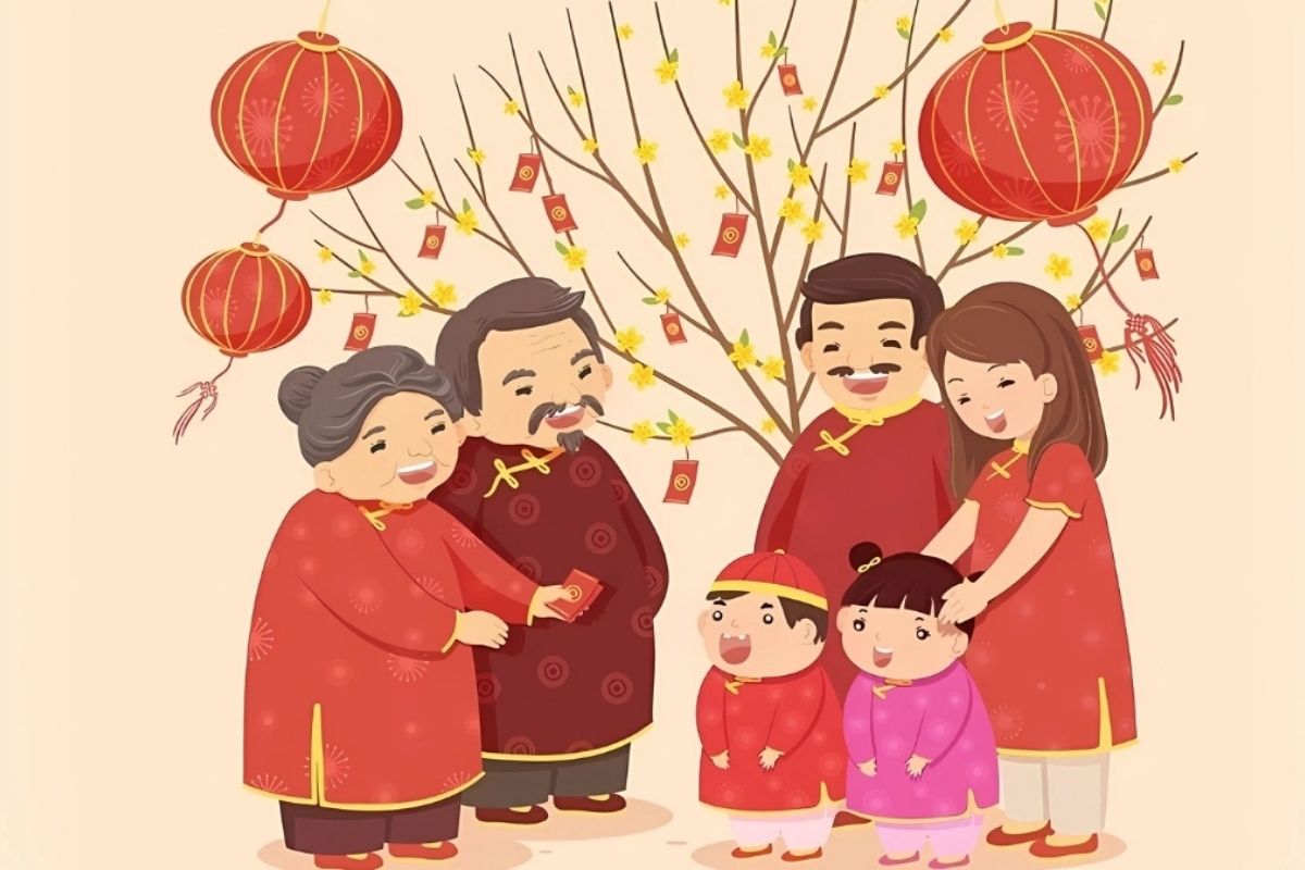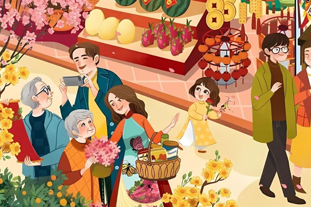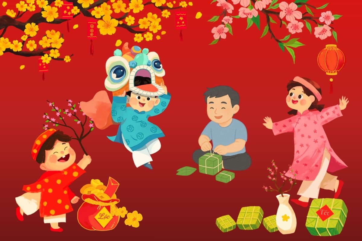 Background Tết lấy ý tưởng từ tranh