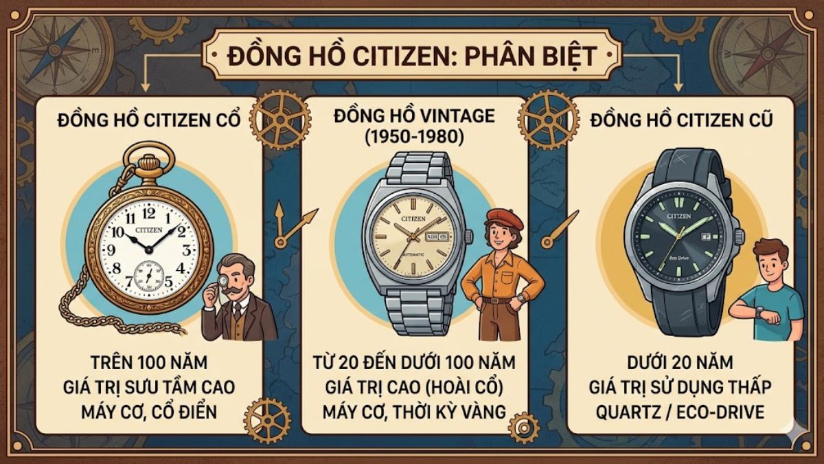 Đồng hồ Citizen cổ là gì? Phân biệt Citizen cổ, vintage và đồng hồ cũ