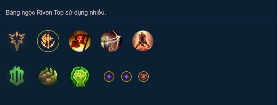 Bảng ngọc Chinh Phục sẽ phù hợp cho một Riven mạnh mẽ với khả năng hồi phục cũng như đem đến một lượng sát thương mạnh mẽ hơn.