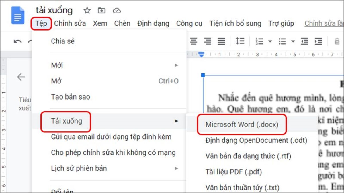 Bước 4: Tại đây, bạn có thể chỉnh sửa nội dung theo ý muốn và chọn 'Tải xuống' dưới dạng Microsoft Word (docx) trong phần 'Tệp' để tải xuống văn bản đã chuyển đổi.