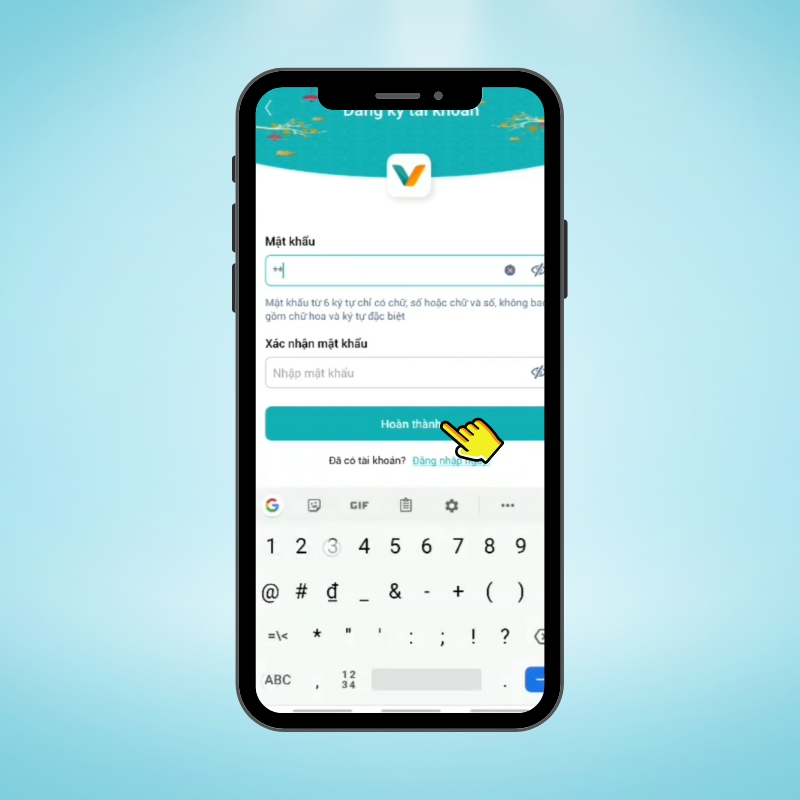 Bước 3: Tại đây, hãy nhập mật khẩu để hoàn thành đăng ký.