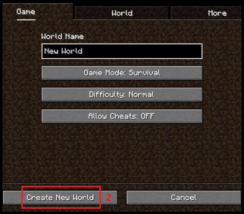 - Bước 3: Thiết lập chế độ chơi (Survival/Creative).