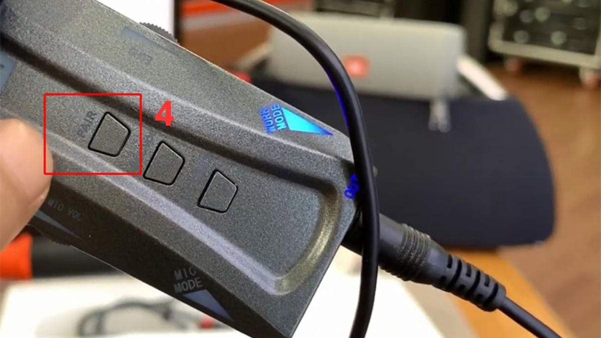 - Bước 4: Pair micro cầm tay với bộ thu (tự động hoặc theo hướng dẫn của micro), bật nhạc và hát.