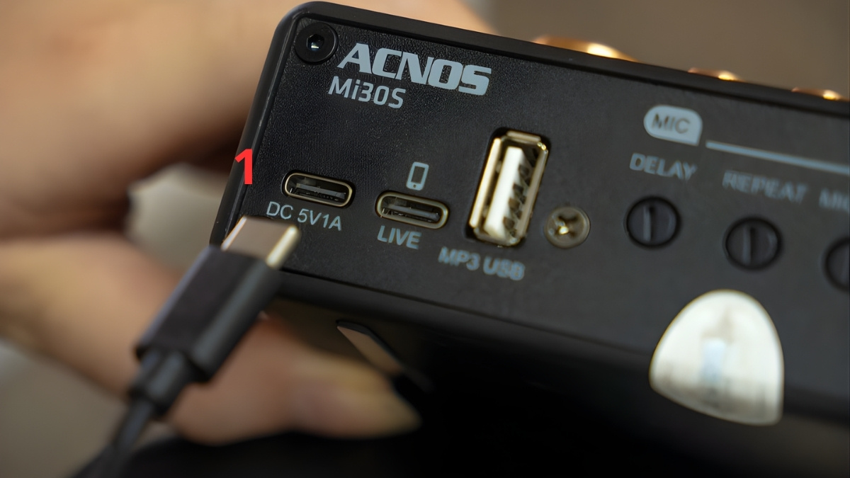 - Bước 1: Cấp nguồn cho bộ thu (với Acnos MI30E nên cắm nguồn USB liên tục, MI30S V2/Alpha Works A1 có thể sạc đầy và dùng pin không dây).