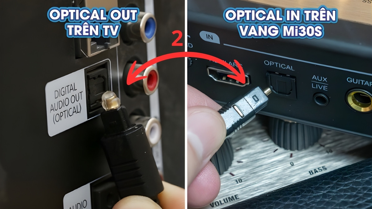 - Bước 3: Kết nối output vang với loa: