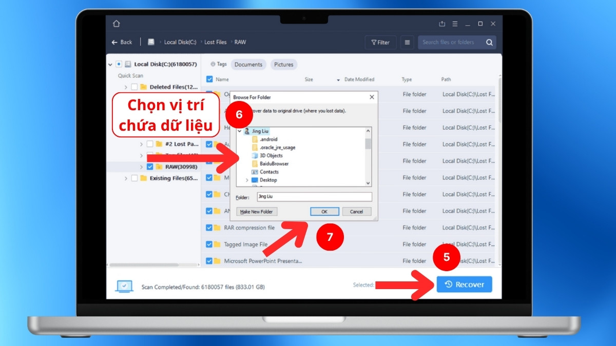 - Chọn Vị trí lưu trên máy tính để khôi phục danh bạ OPPO.