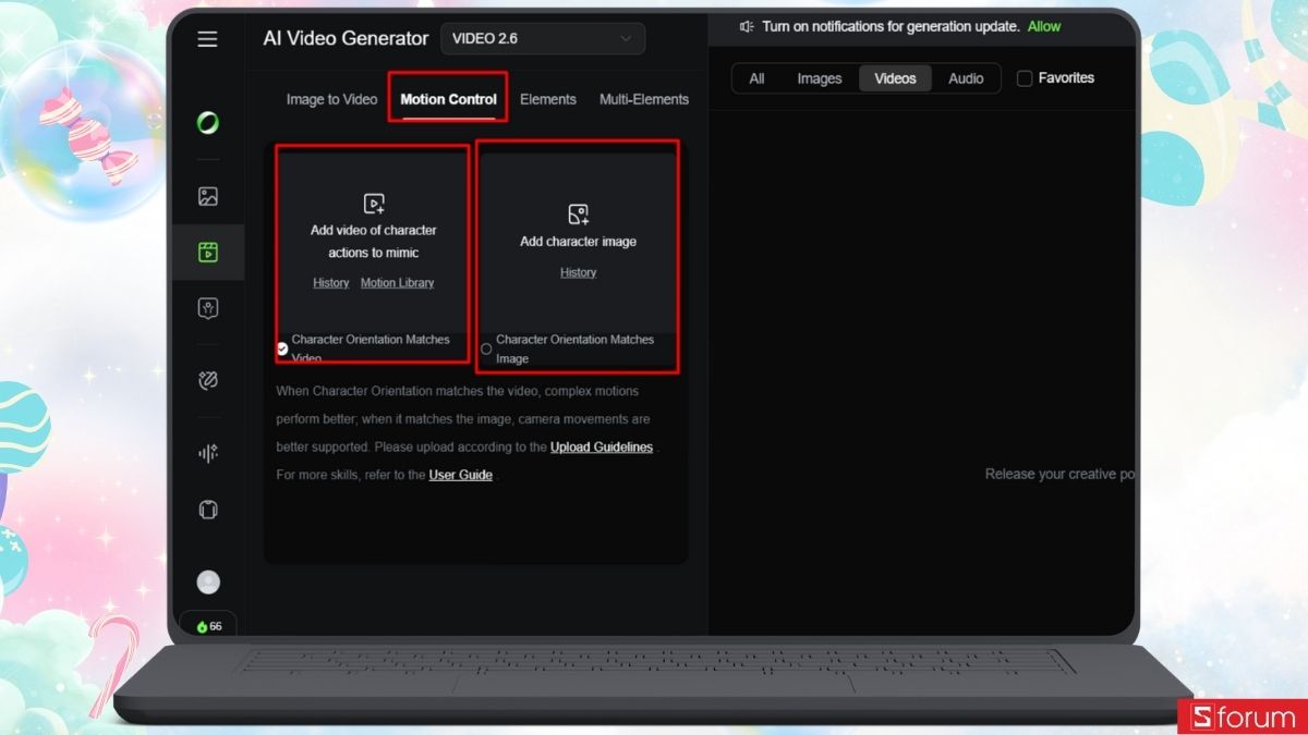 Sau khi vào giao diện AI Video hãy chuyển sang mô hình "Motion Control".