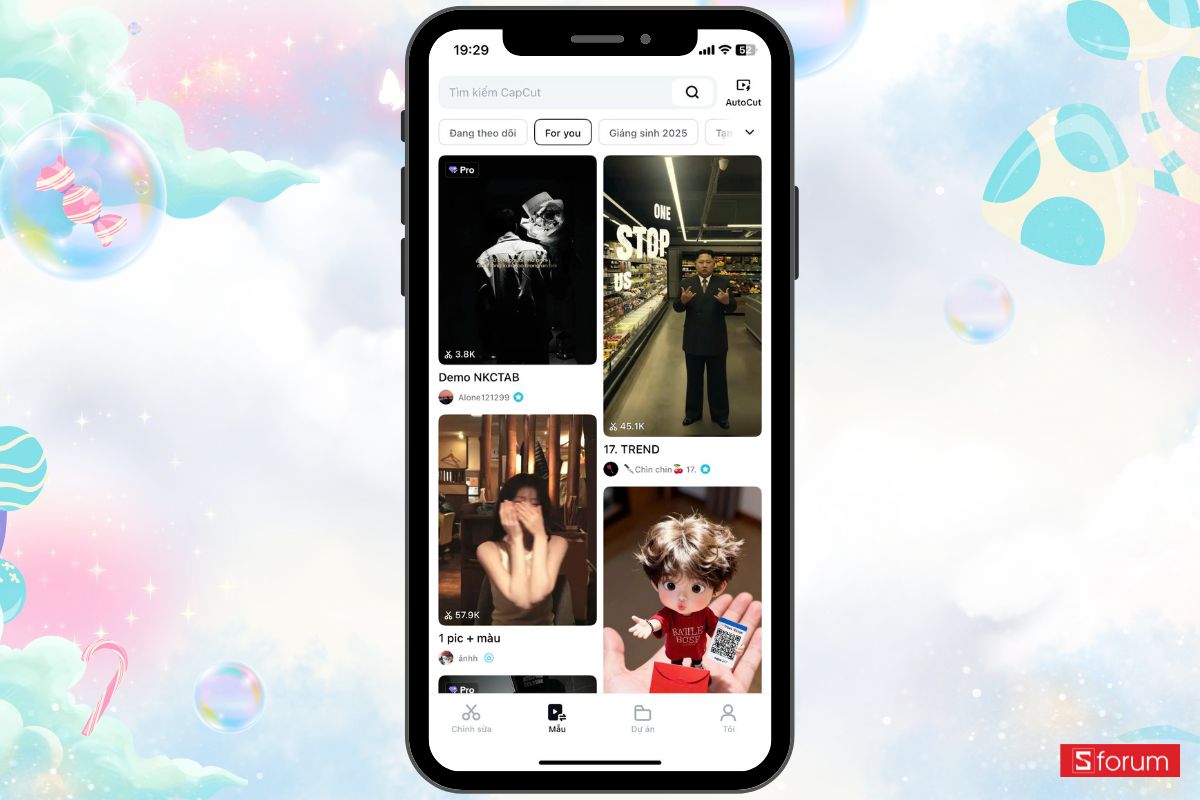 Bước 3: Lựa chọn một mẫu có hiệu ứng ưng ý (ưu tiên mẫu nhiều lượt dùng), nhấn "Sử dụng mẫu" và tải lên bức ảnh em bé rõ mặt từ điện thoại.