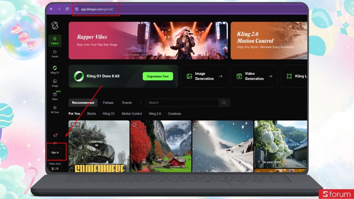 Bước 2: Truy cập vào đường link trang chủ Kling AI (https://app.klingai.com/global/)