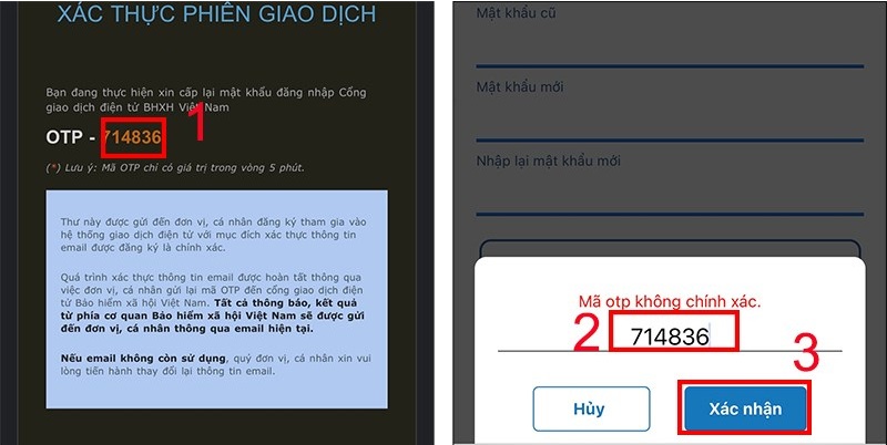 Bước 4: Mã OTP sẽ được gửi về email hoặc điện thoại của bạn. Thực hiện nhập mã OTP và ấn chọn “Xác nhận” là đã đổi mật khẩu VssID thành công.