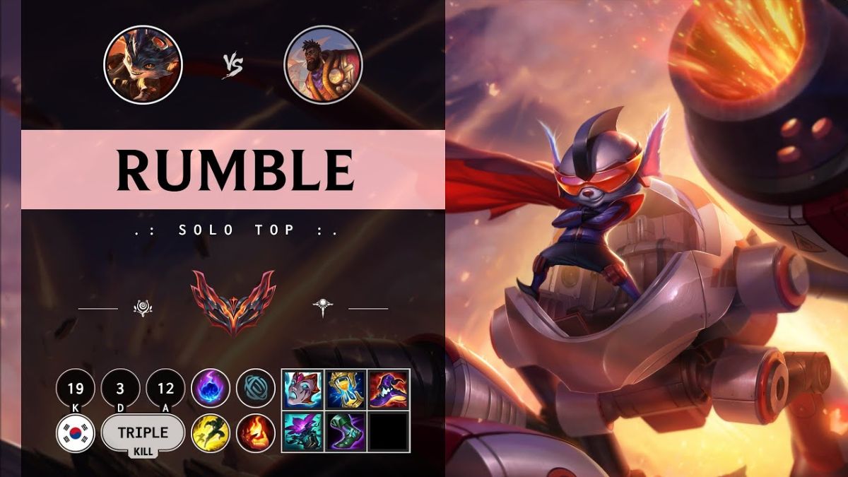 Rumble mạnh nhất ở đường Baron, nơi hắn có không gian dùng chiêu và ép góc hiệu quả. Một số trường hợp có thể chơi mid, nhưng tỉ lệ thắng thấp hơn do dễ bị gank và khó kiểm soát nhiệt.