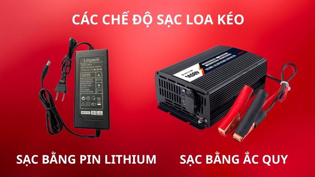 Tùy theo cấu tạo của thiết bị, chế độ sạc loa kẹo kéo có thể thực hiện bằng bộ adapter chuyên dụng đối với loa dùng pin lithium hoặc bằng dây kẹp sạc DC khi loa sử dụng bình ắc quy. Việc chọn đúng phương pháp sạc sẽ giúp nguồn điện ổn định và hạn chế ảnh hưởng đến linh kiện bên trong.