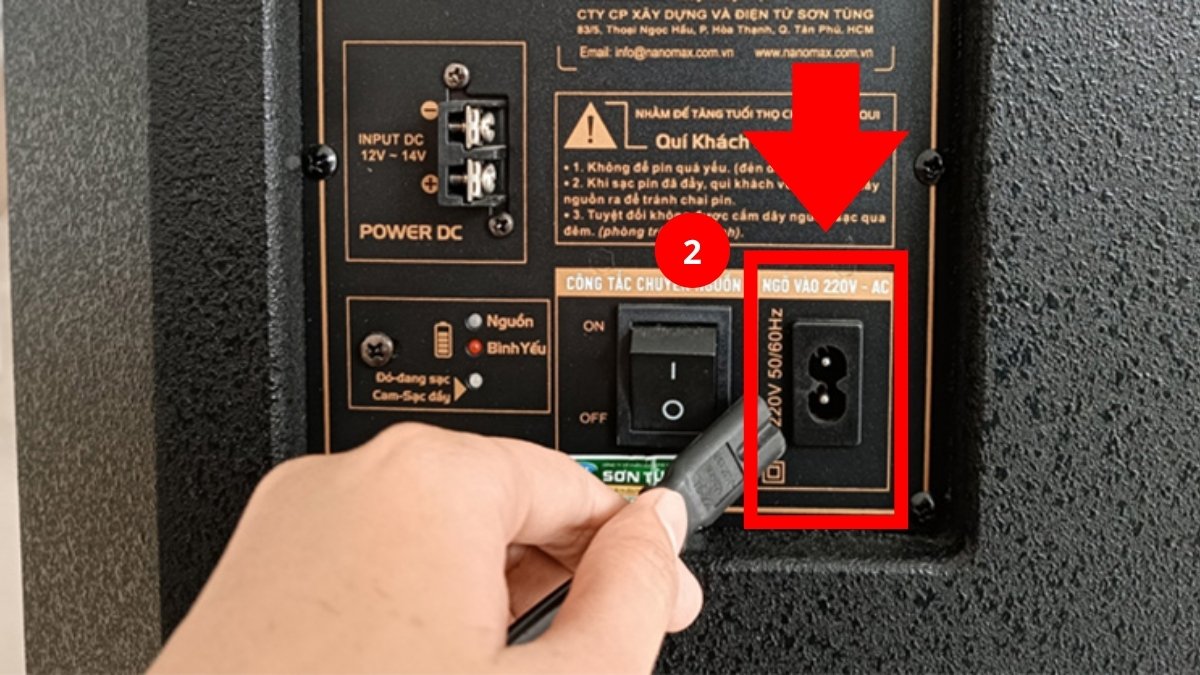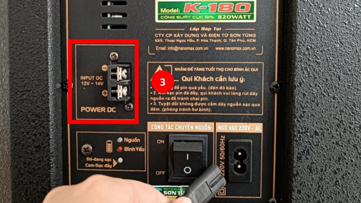 Cách 1: Đối với loa kéo được trang bị nguồn điện từ ắc quy: