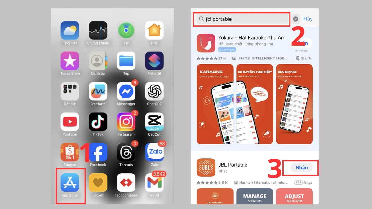 - Gõ JBL Portable ở ô tìm kiếm → ấn Nhận để tải xuống.