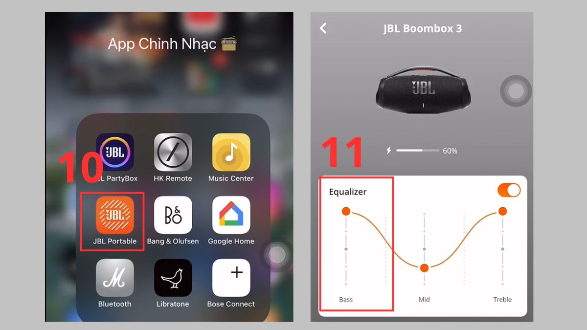 Cách dùng loa JBL trong trường hợp muốn bật hoặc điều chỉnh chế độ âm trầm có thể thực hiện trực tiếp thông qua ứng dụng JBL Portable. Với các dòng loa hỗ trợ app, người dùng chỉ cần kết nối loa JBL với điện thoại là có thể tinh chỉnh âm bass nhanh chóng.