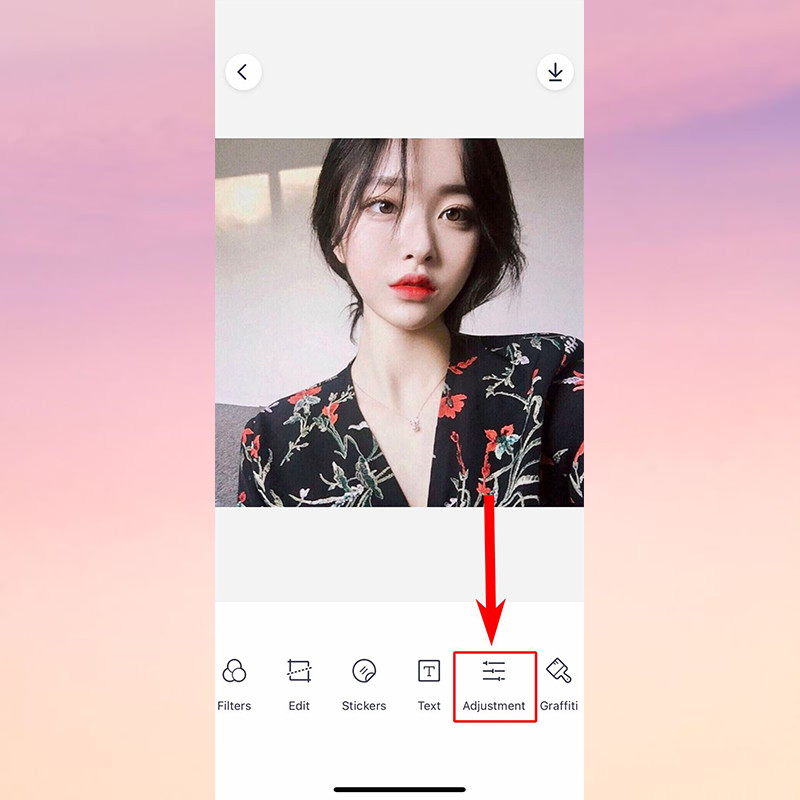 Bước 4: Cuối cùng, hãy chọn vào biểu tượng tải về để tải ảnh vừa chỉnh sửa về điện thoại nhé!