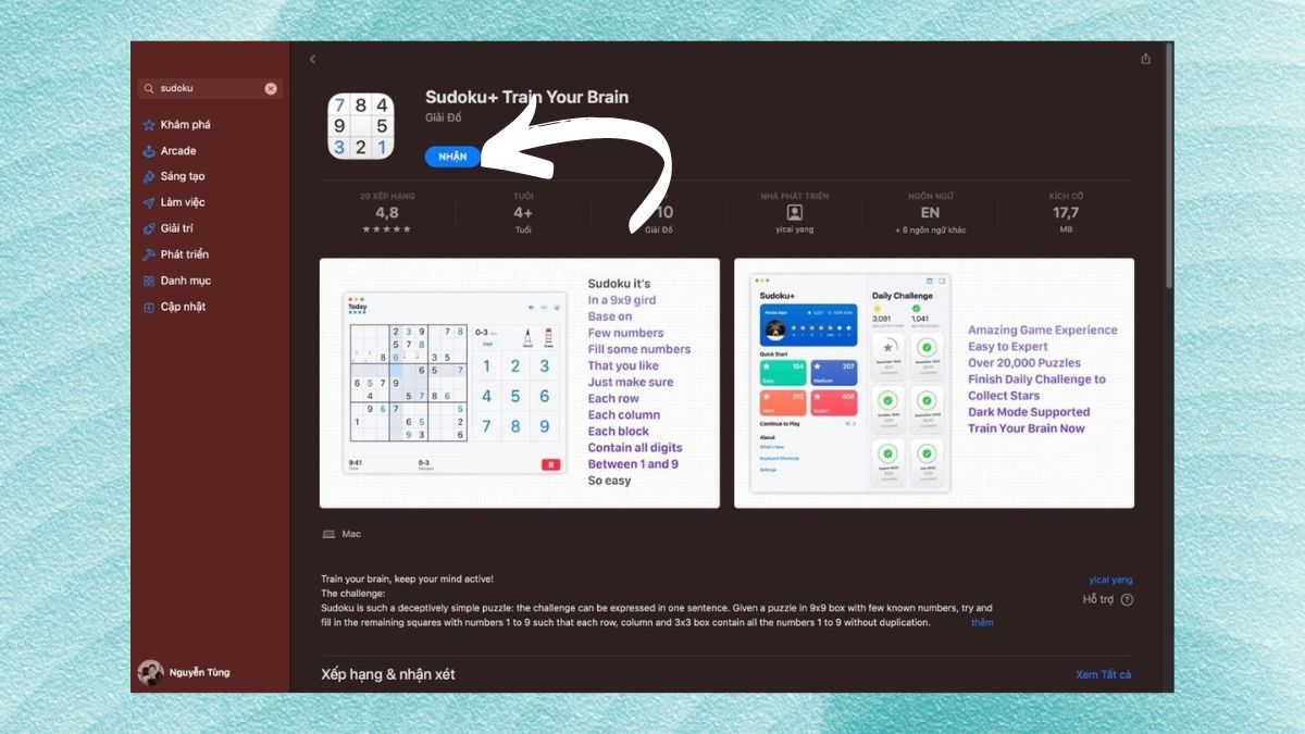 Bước 3: Sau khi tìm thấy trò chơi mong muốn, nhấp vào nút 'Nhận'. Trò chơi sẽ được tải về và cài đặt tự động trên MacBook của bạn. Đảm bảo rằng bạn có kết nối Internet ổn định để quá trình tải xuống diễn ra nhanh chóng và trơn tru.