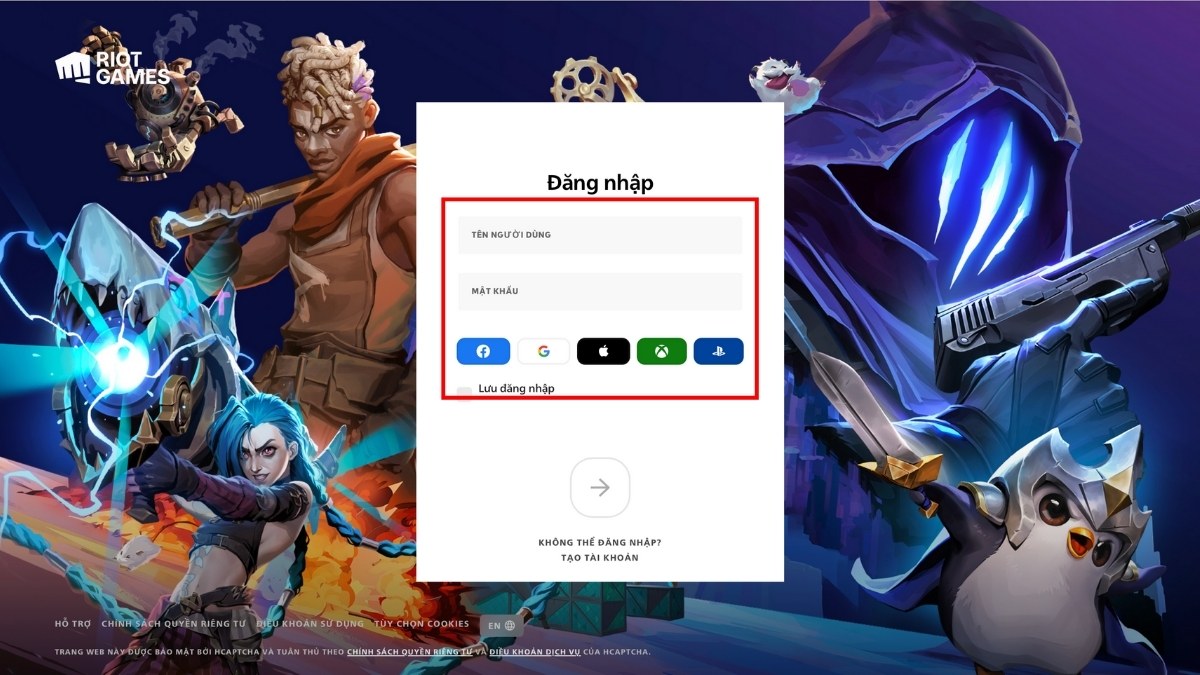 Bước 2: Điền địa chỉ email hoặc tên account kèm mật khẩu Riot Games của bạn.