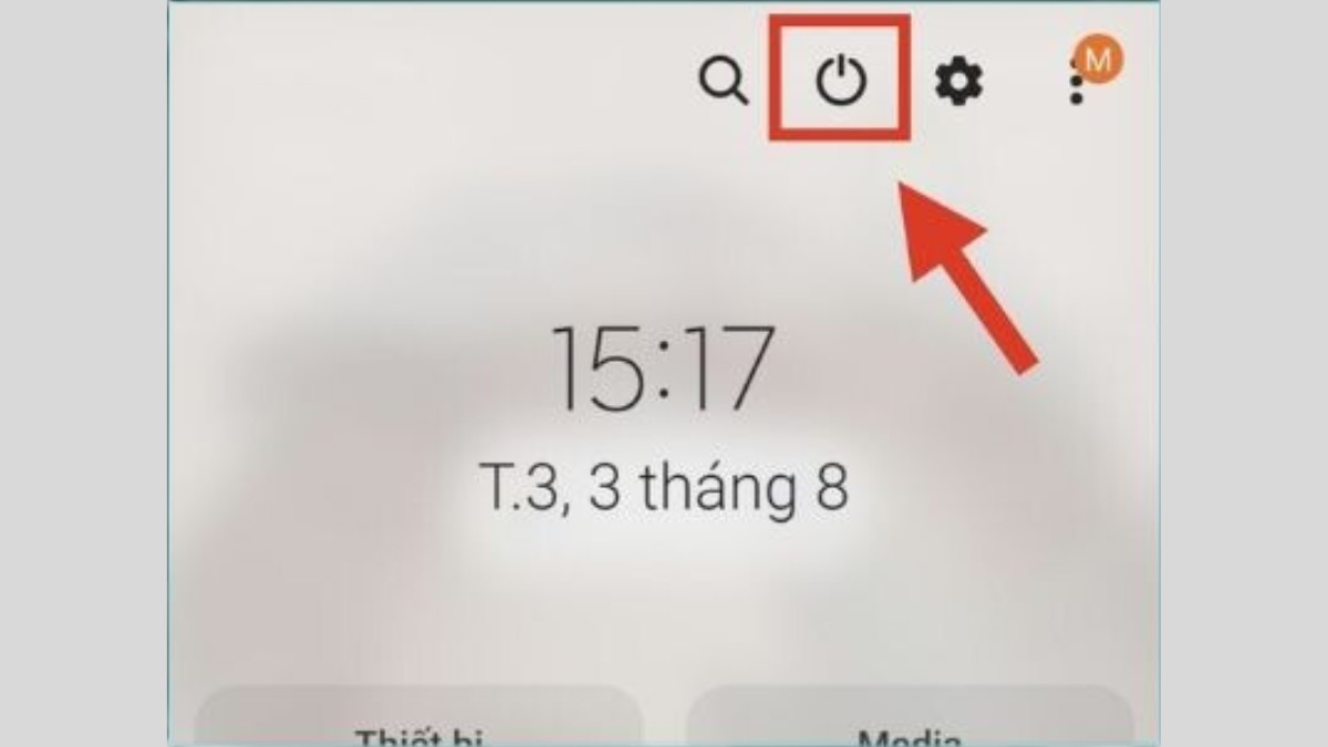 - Bước 1: Vuốt từ phía trên màn hình xuống để hiển thị thanh thông báo. Nếu bạn muốn thấy toàn bộ thanh thông báo, có thể vuốt 2 lần. Sau đó, nhấn vào biểu tượng “Tắt nguồn”, nằm bên trái biểu tượng cài đặt.