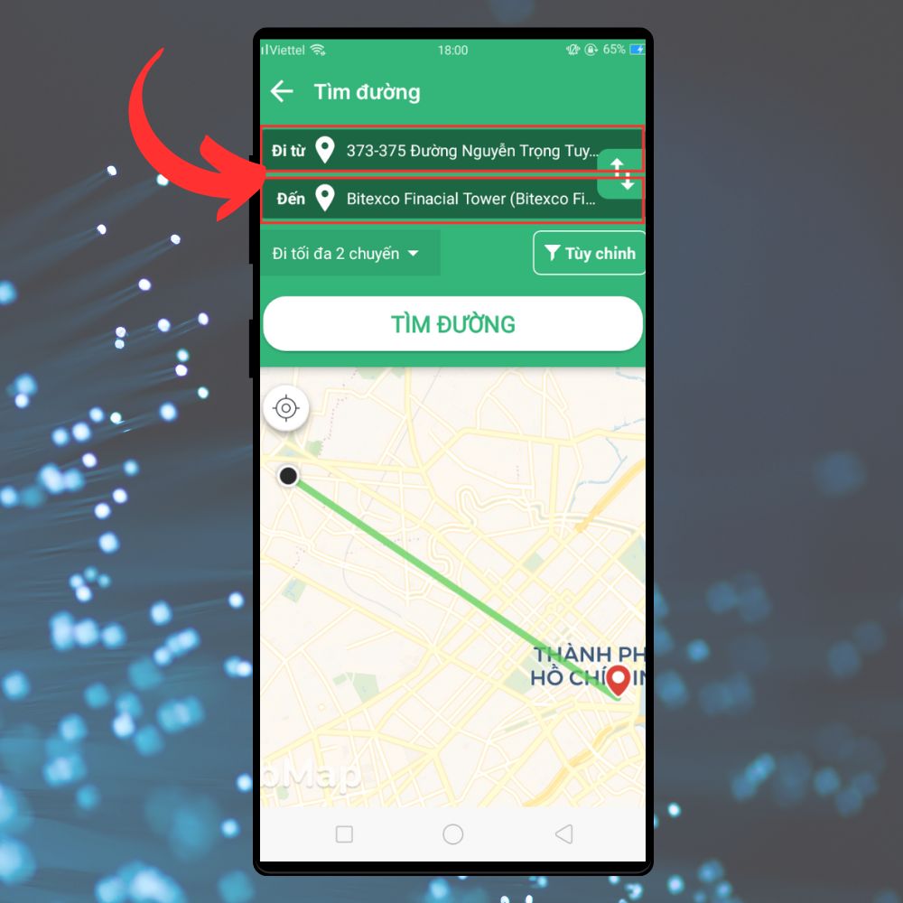 Dưới đây là các bước để tìm lộ trình xe bus:
