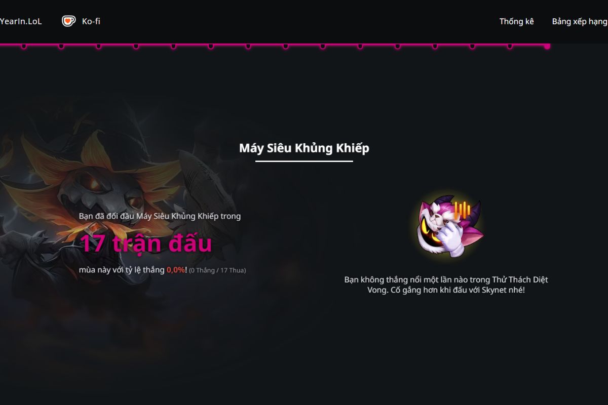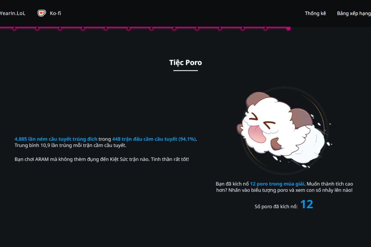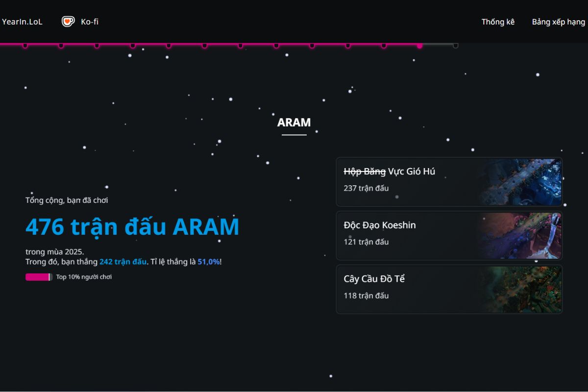 Đây là một công cụ chuyên dùng để tạo bản recap tổng kết năm cho người chơi Liên Minh Huyền Thoại. Công cụ này hoạt động dựa trên dữ liệu lịch sử trận đấu của bạn trong cả năm, thu thập và phân tích một cách hệ thống.